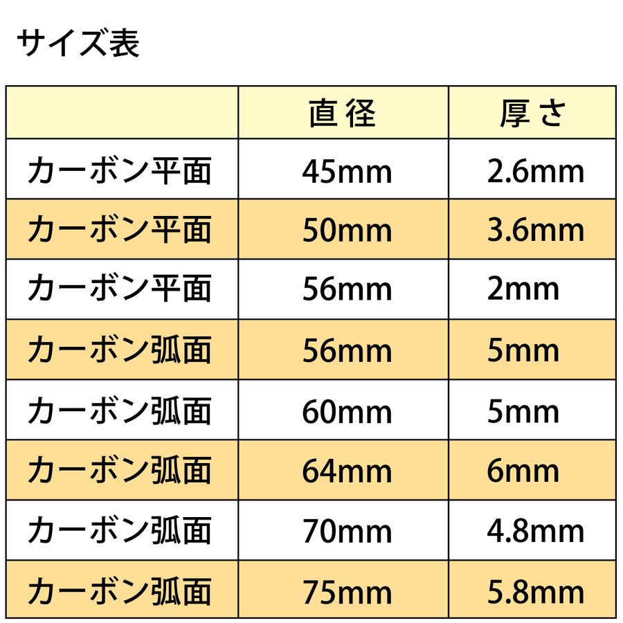カーボン弧面 直径75mm 厚さ5.8mm