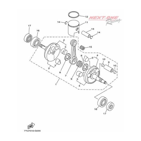 ヤマハKT-100SD/SEC用のピストン/クランク周辺パーツです。
