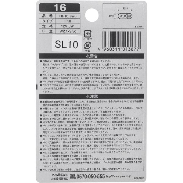 PIAA ポジション/ルーム/ライセンスプレート用 ハロゲンバルブ T10(W2.1x9.5d) クリア 2個入 12V 5W HR16