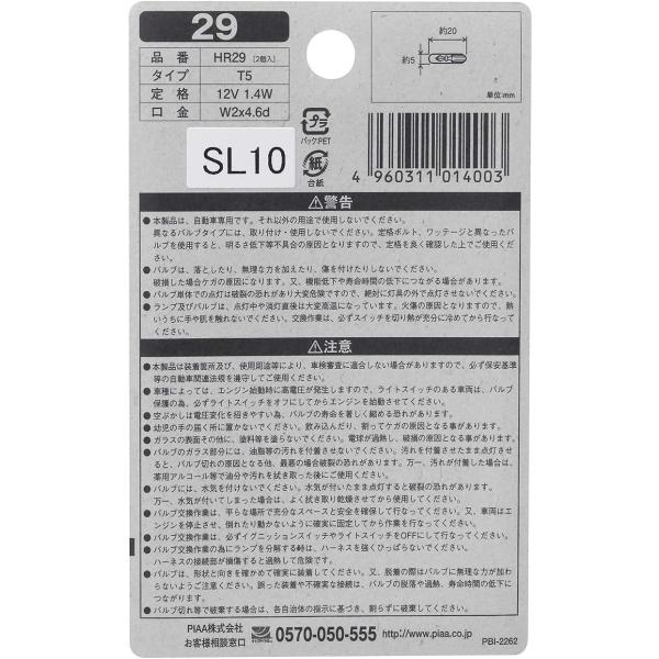 PIAA メーターランプ用 ハロゲンバルブ T5(W2x4.6d) クリア 2個入 12V 1.4W HR29
