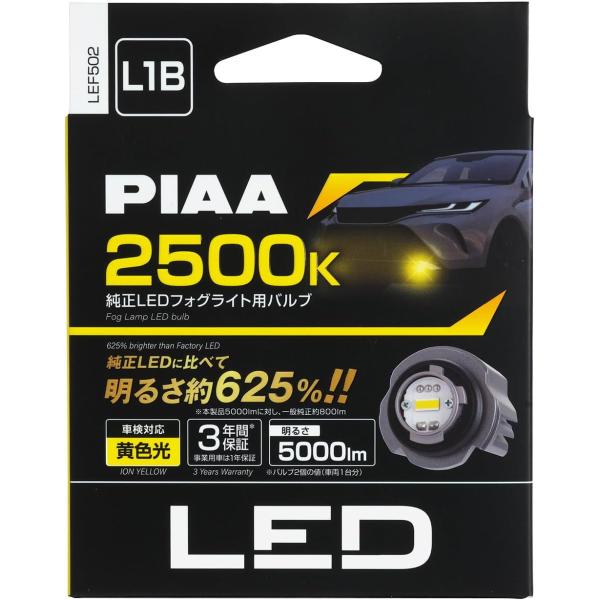PIAA ピア 車用 フォグライト用 LED 純正交換用バルブ 2500K LEF502 ノイズ対応 耐水基準防水/防塵性能(JIS S2クリア)12V 20W 5000lm L1B 車検対応 2個入