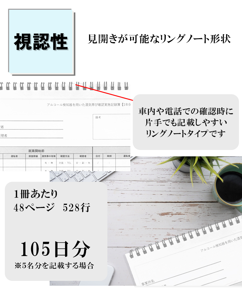 | 名称 | 片手でも使いやすいリングノートタイプ アルコール検査記録簿 | |