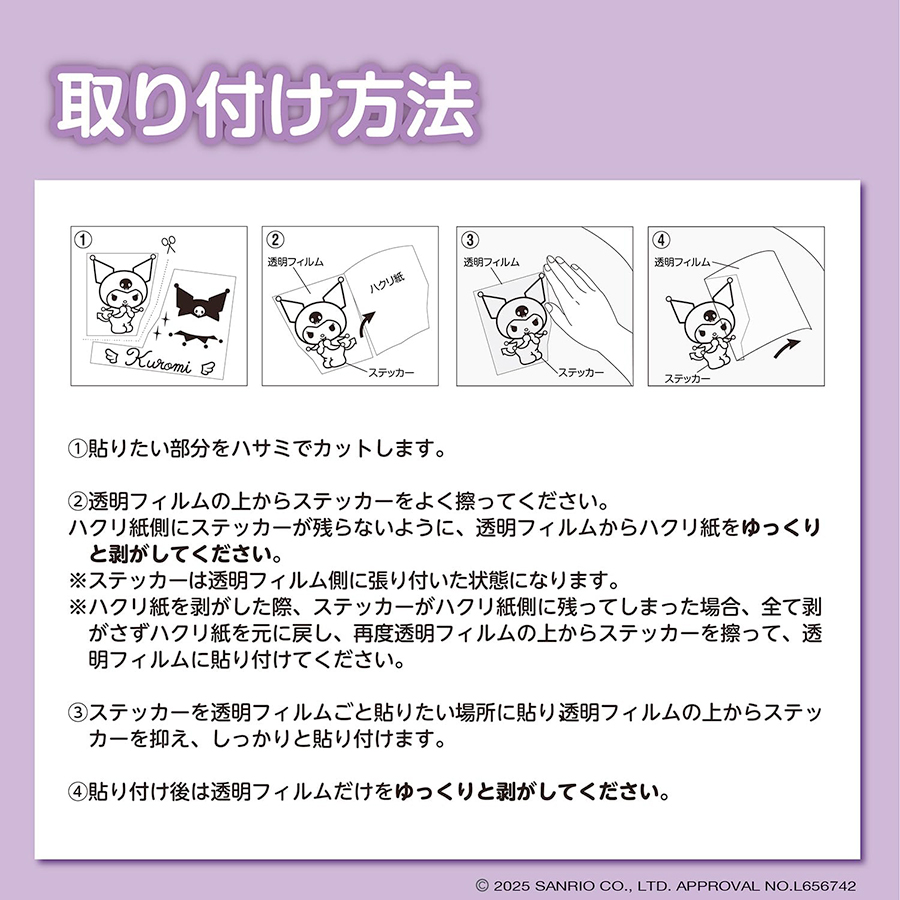 ●クルマのボディやパソコンなど、お好きなところに貼って楽しむクロミのステッカーです。