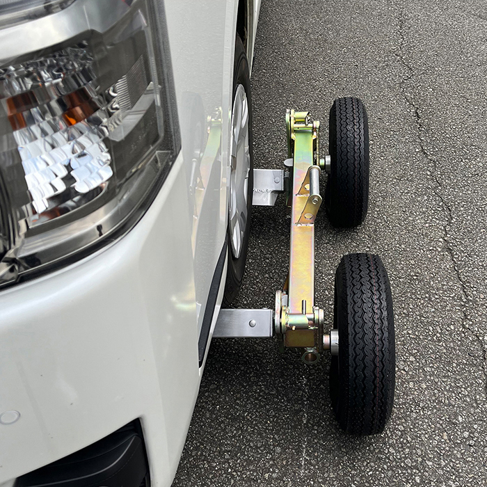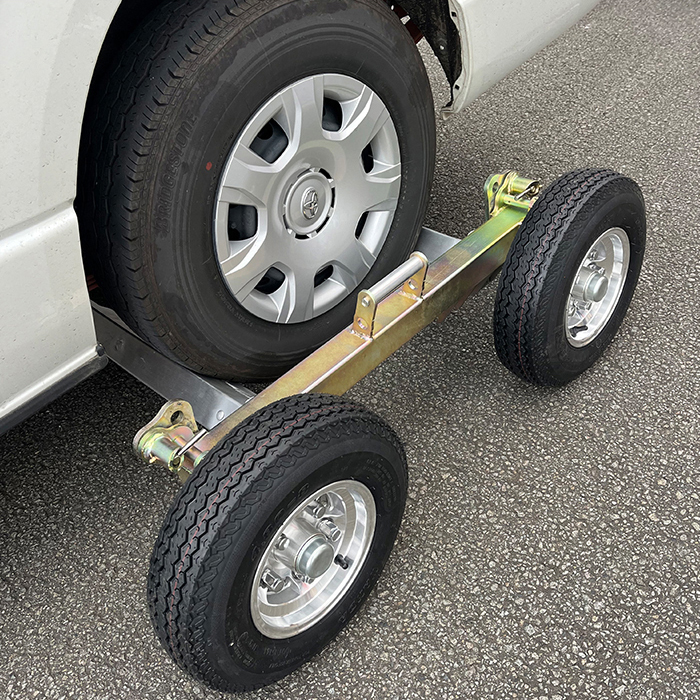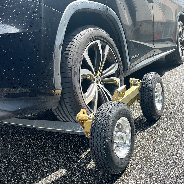 事故車や動かない車両を素早く安全に移動させるために設計されたこのドーリーは、シンプルな組み立てとスムーズな操作性を実現しました。