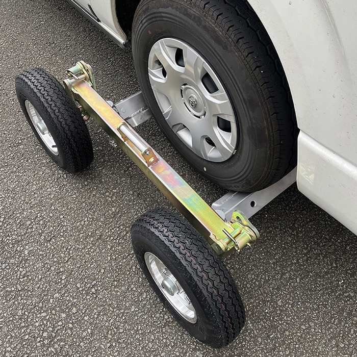 2.クロスレールを延長し、車両のタイヤの下に配置する