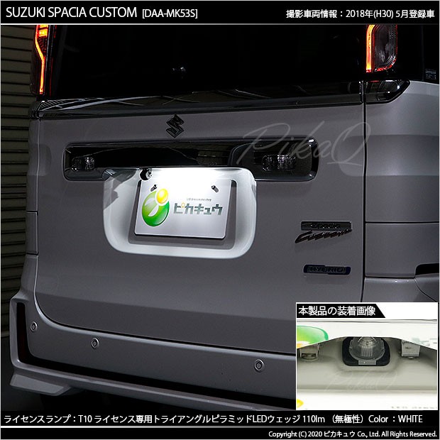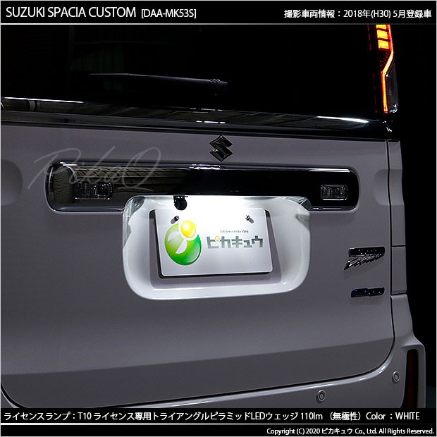 ピカキュウ,LED専門店,LEDバルブ,LED,SMD,T10,W5W,ライセンスランプ専用,ナンバー灯専用,番号灯,爆光,拡散,高輝度,明るい,車検対応,日本製の車,国産DC12V車,ハイブリッド車対応,白,スズキ,スペーシアカスタム,SUZUKI,SPACIA CUSTOM,MK53S