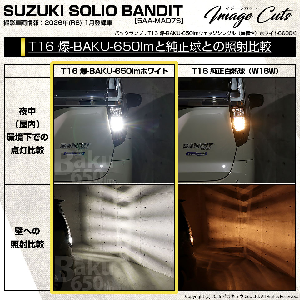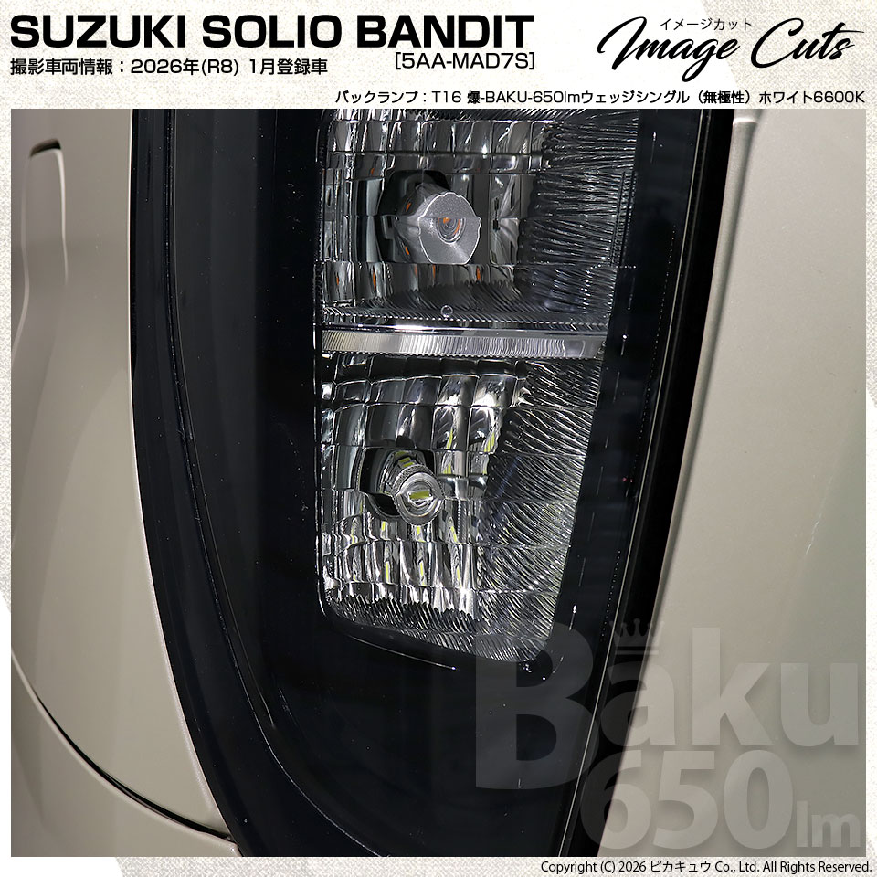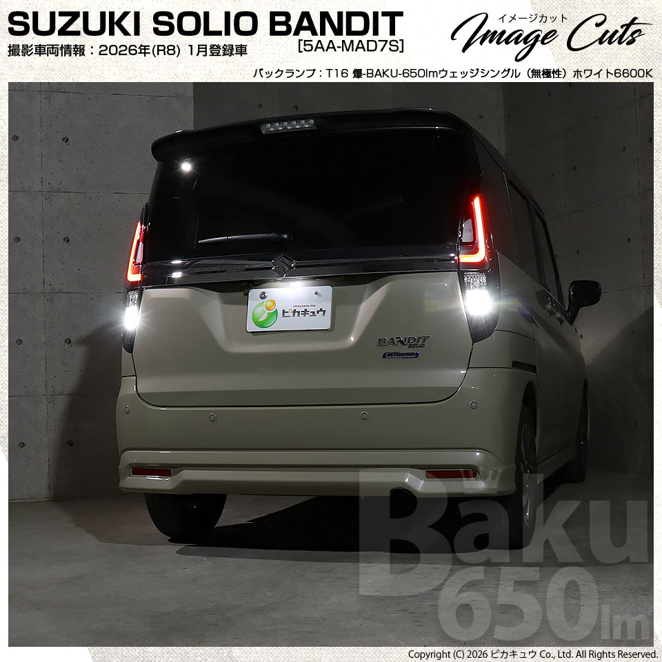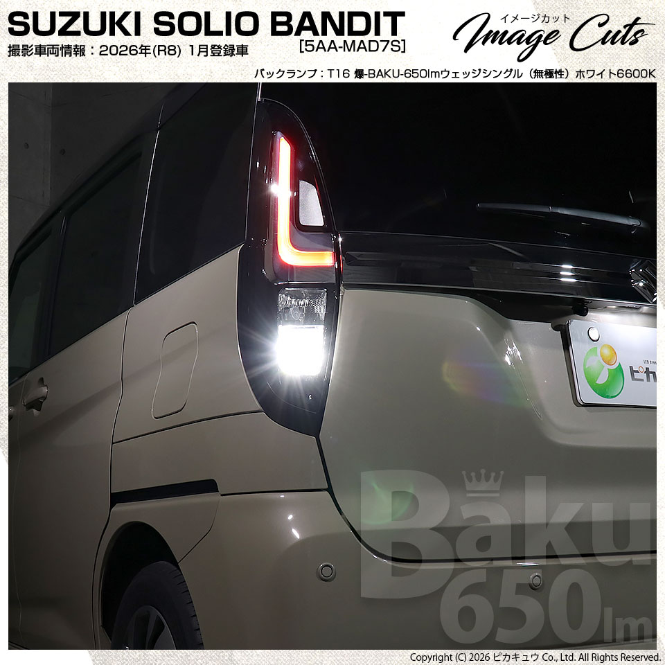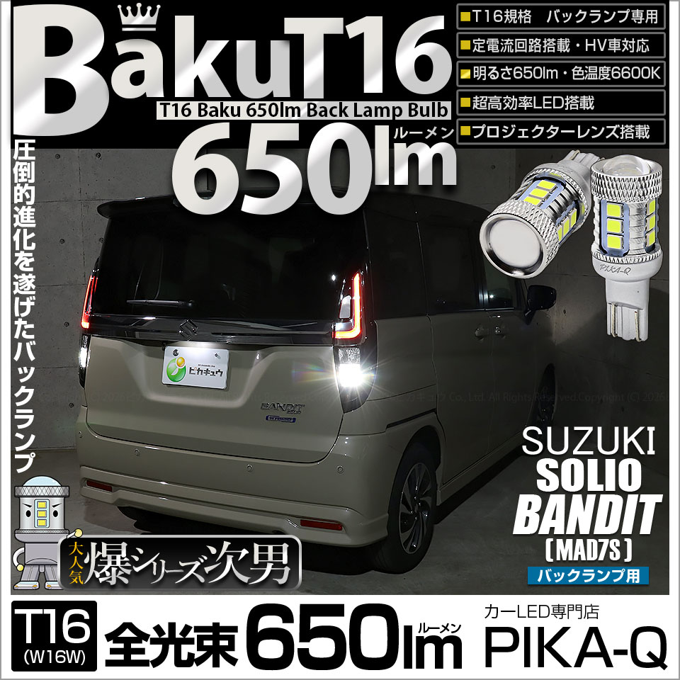 ピカキュウ,LED専門店,LEDバルブ,LED,SMD,T16ウェッジ,定電流回路搭載,T16S,T16シングル,BAKU 650lm ウェッジシングル球,全光650lm,白色,6600ケルビン,ホワイト,バックランプ専用LEDバルブ,SUZUKI,スズキ,SOLIO,ソリオ,BANDIT,バンディット,MAD7S,3型