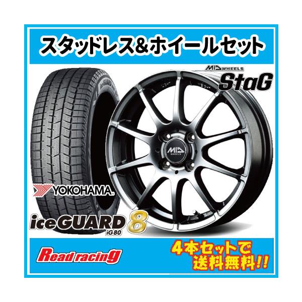 軽量モデル MID STAG 15X5.5J 4H/100 +45 ヨコハマ アイスガード8 IG80 185/65R15 88Q 4本以上で送料無料!!