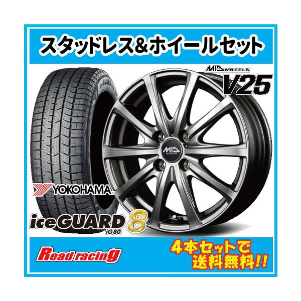 軽量モデル MID V25 14X5.5J 4H/100 +45 ヨコハマ アイスガード8 IG80 185/70R14 88Q 4本以上で送料無料!!