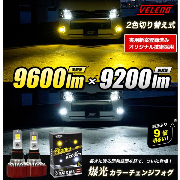 ハイエース 200系 4型 5型 6型 LEDフォグランプ 9600lm カラーチェンジ 2色 切替 フォグランプ 2色発光 イエロー ホワイト PSX26W VELENO