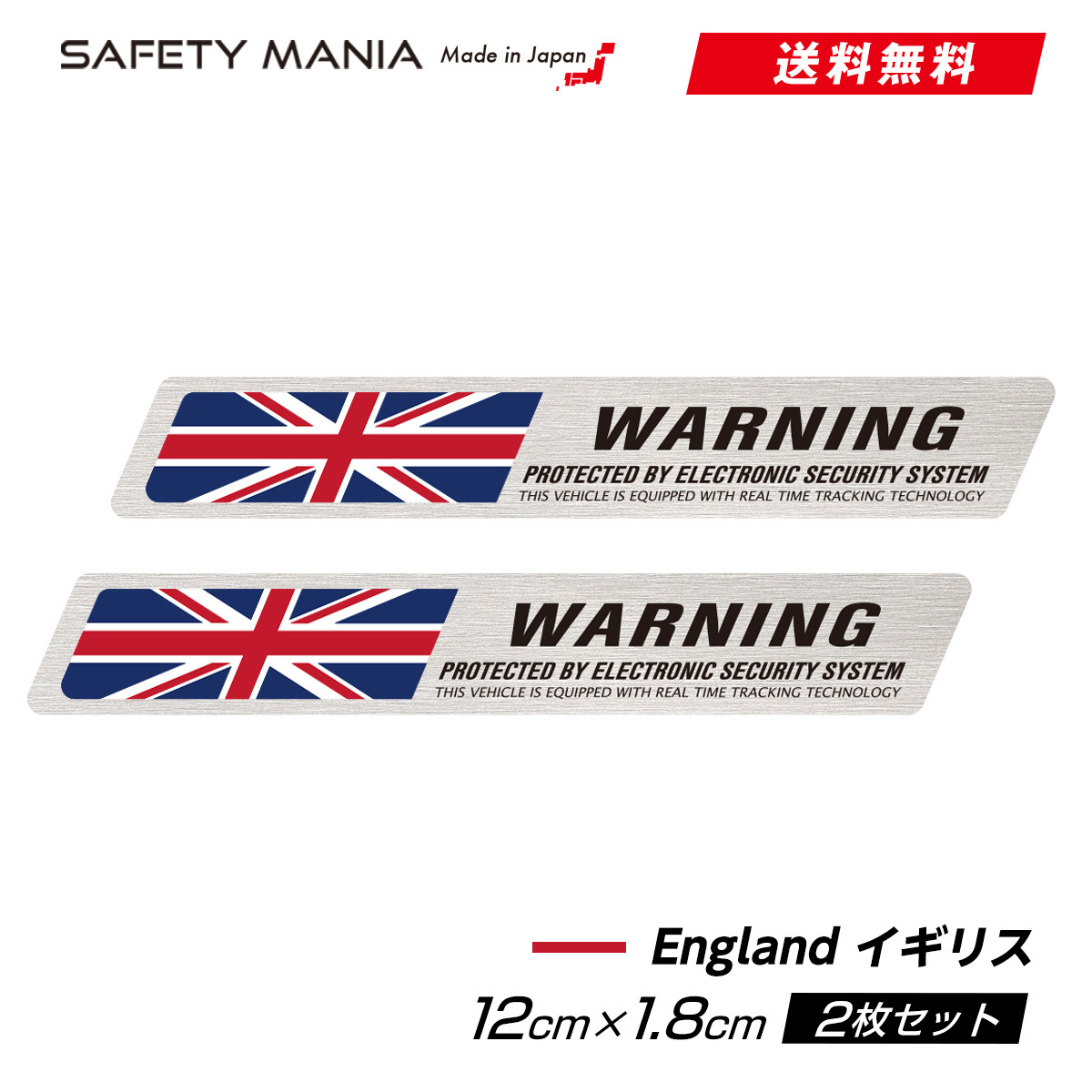 2枚セット 国旗 防犯ステッカー 12cm 高級アルミヘアライン仕様 選べる10カ国 盗難防止 セキュリティ警告 イギリス 耐水 強粘着 屋外OK 送料無料 SAFETY MANIA