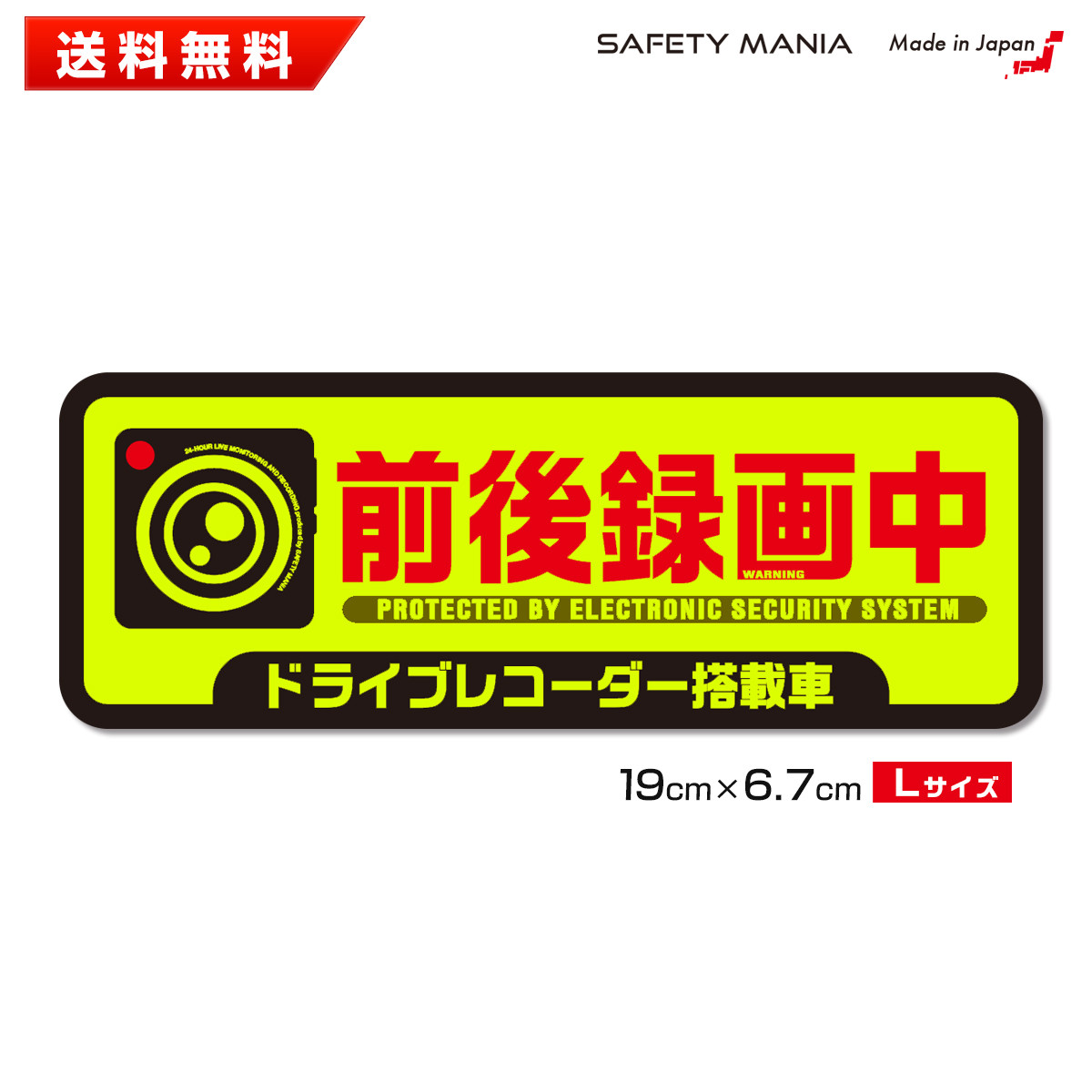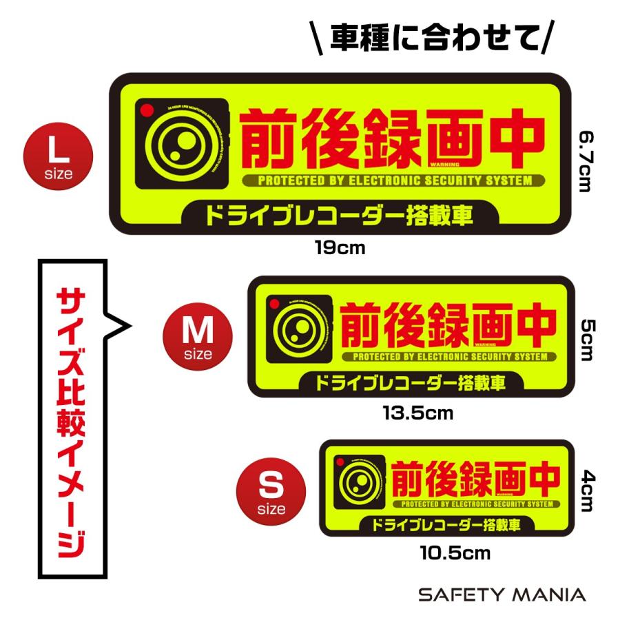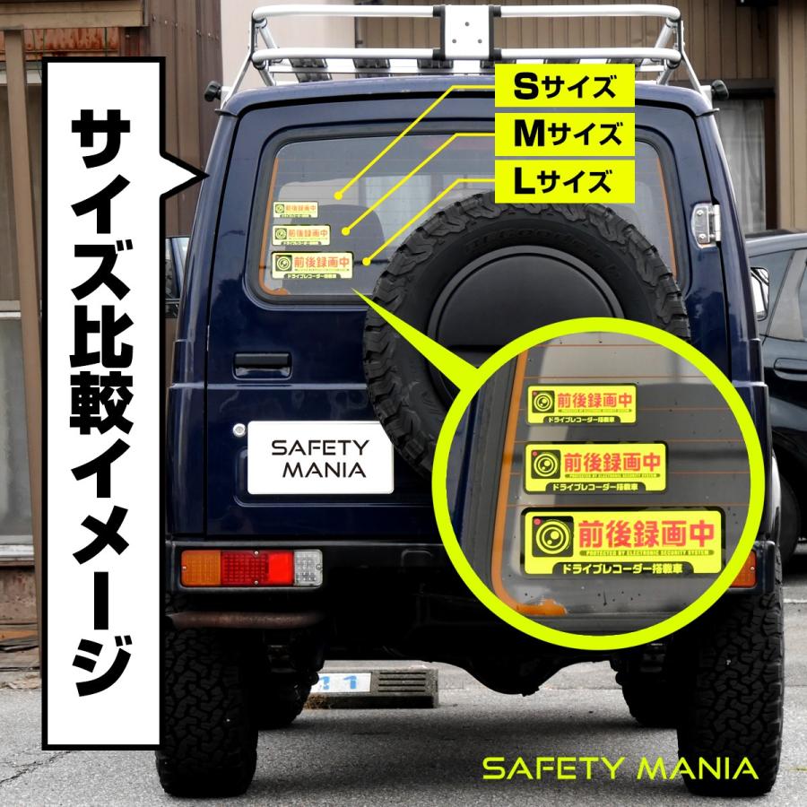 ステッカー 蛍光 強発色Lサイズ 前後録画中 ドライブレコーダー 搭載車両 あおり運転防止に 安全運転 防水 耐候 送料無料 SAFETY MANIA