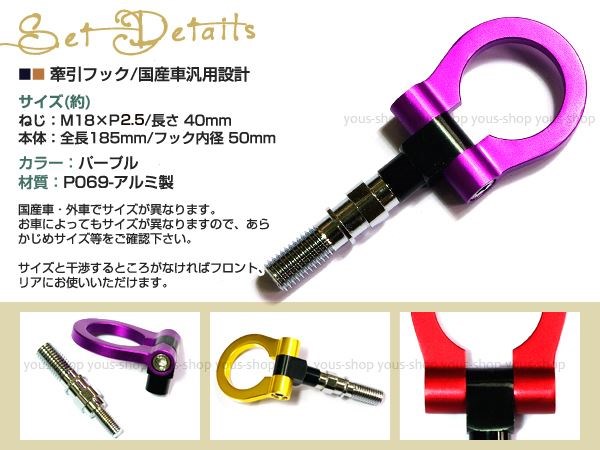 可倒式 汎用 トーフック 牽引フック 紫 トーイング M18 P2.5 GB3 GB4 フリード GE6 GE7 GE8 GE9 フィット ZF1 CRZ インサイト ZE2