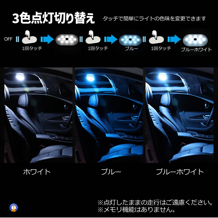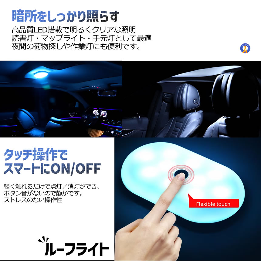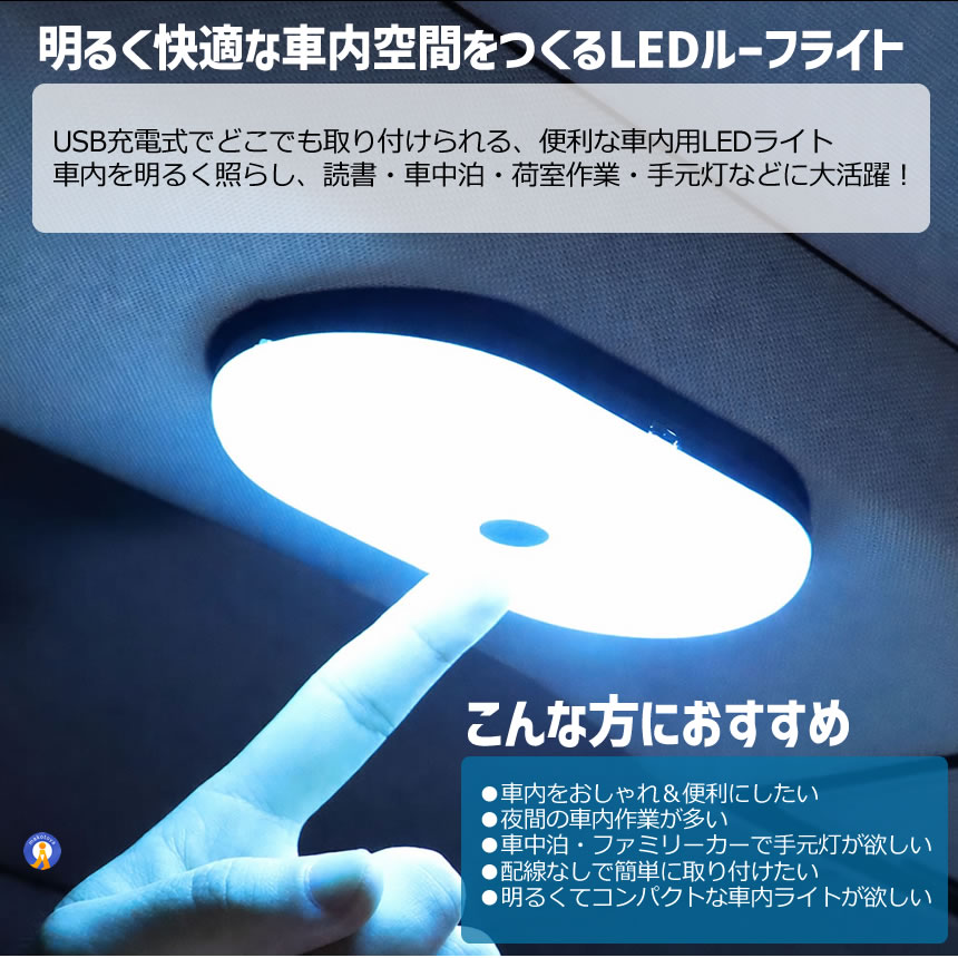 LEDライト 充電式 ルーフライト 車内照明 読書灯 車載 タッチ操作 車内ランプ ルームライト BLRAI