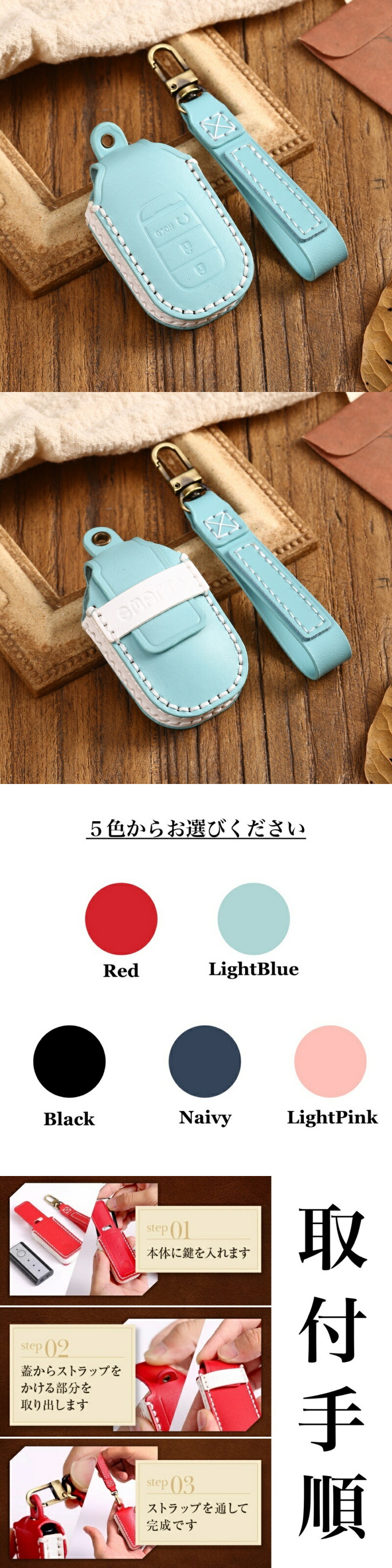 ストラップタイプ ホンダ 新型ヴェゼル RV5 RV6 ZR-V 本革 キーカバー