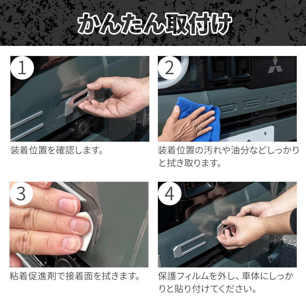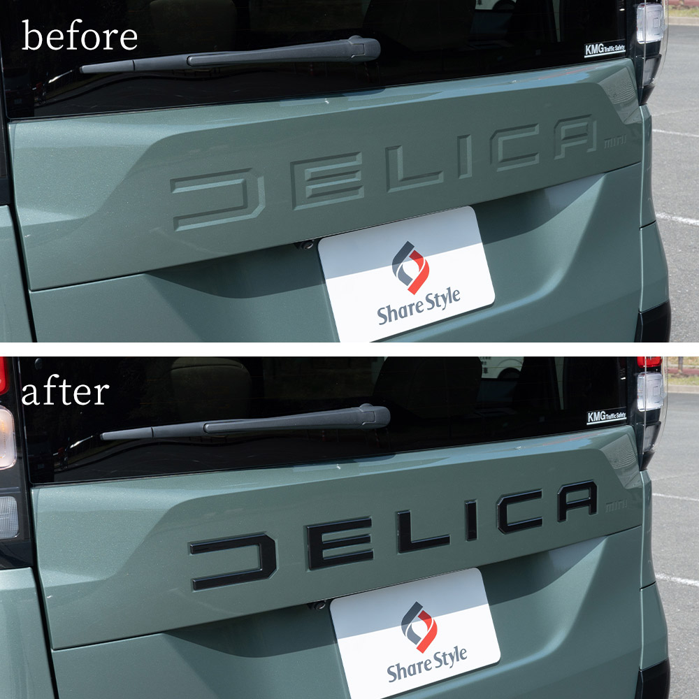 デリカミニ後期 BA系フロントリアロゴプレート 2025年式10月 専用設計 エンブレム ロゴ ステッカー 外装 カスタム パーツ アクセサリー シェアスタイル 爆買