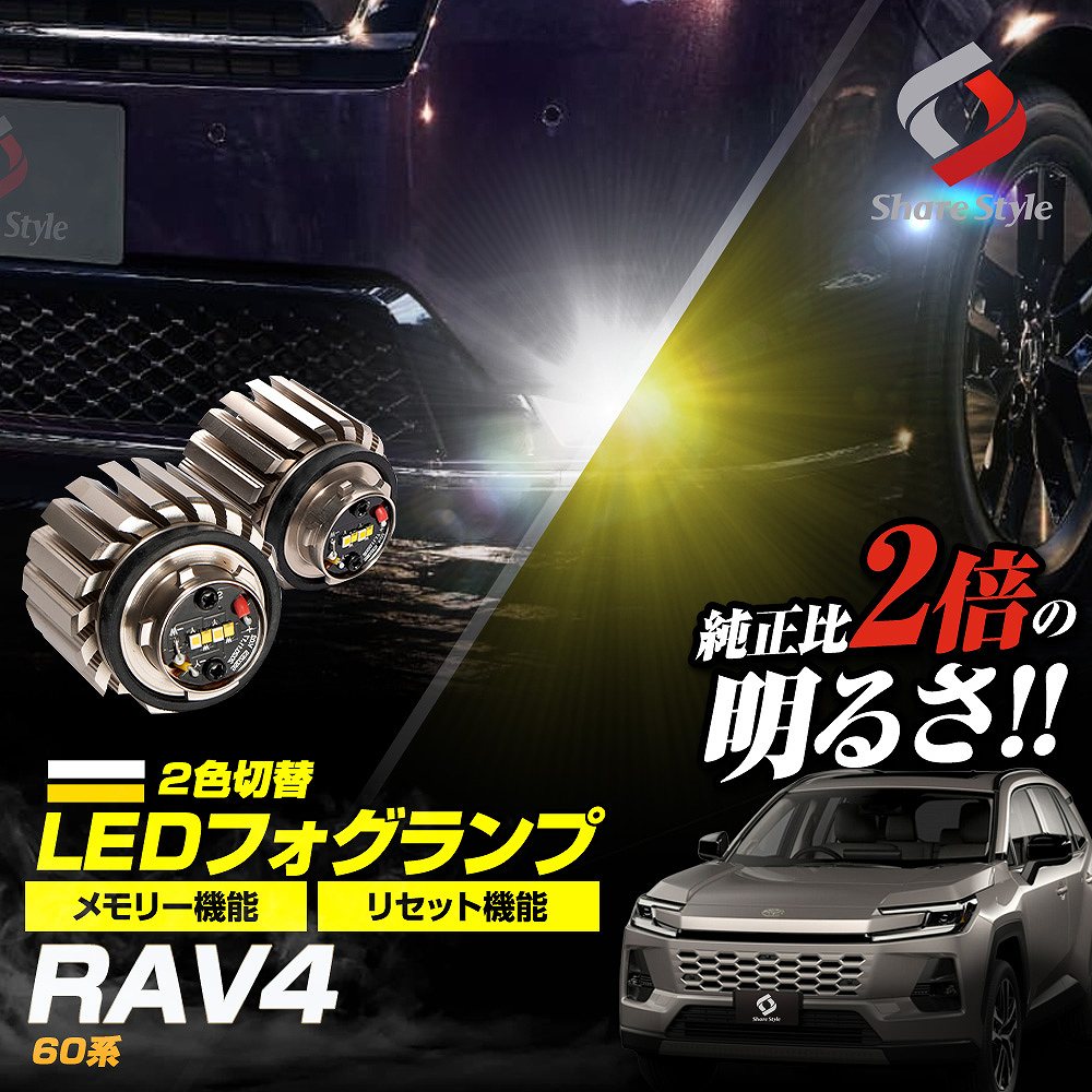RAV4 60系 フォグランプ 2色発光切替 ホワイト イエロー バイカラー LED 車検対応 L1B AXAN64 ラブ4 トヨタ シェアスタイル 爆買