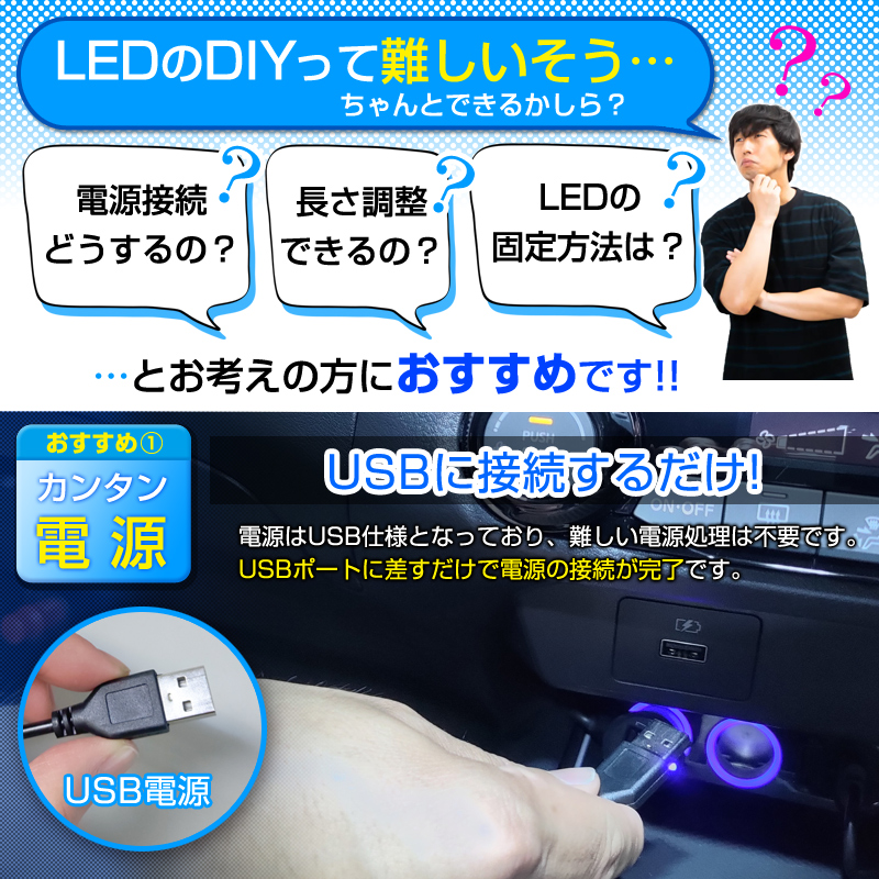 ・LED部分はハサミでカットが可能です。長さ調整も簡単です。