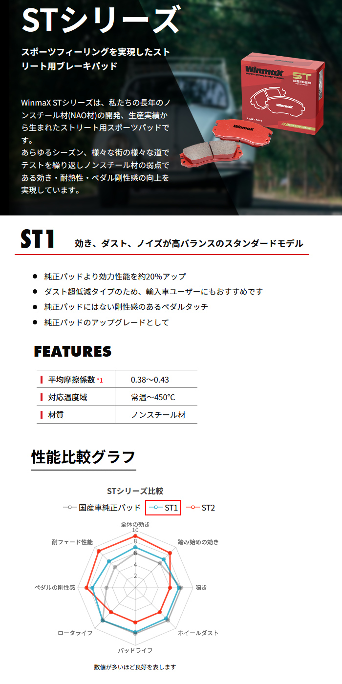 | 品名 | WINMAX ブレーキパッド ST1 フロントのみ |