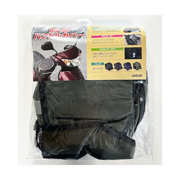 メーカー:ユニカー工業 品番:S01GR/BK ミニバイク〜大型バイクまで幅広くご使用いただける防寒ハンドルカバー。 <パッケージ><使用イメージ>