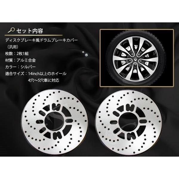 4穴 汎用ディスクブレーキ風 ドラムブレーキ カバー シルバー2枚
