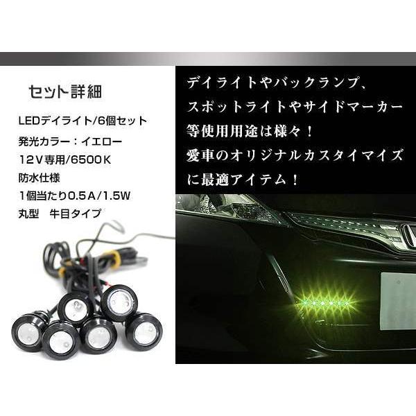 12V 超小型 イーグルアイ LED 18mm スポットライト イエロー/黄 常時点灯 防水仕様!ブラックボディ 牛目 6個セット