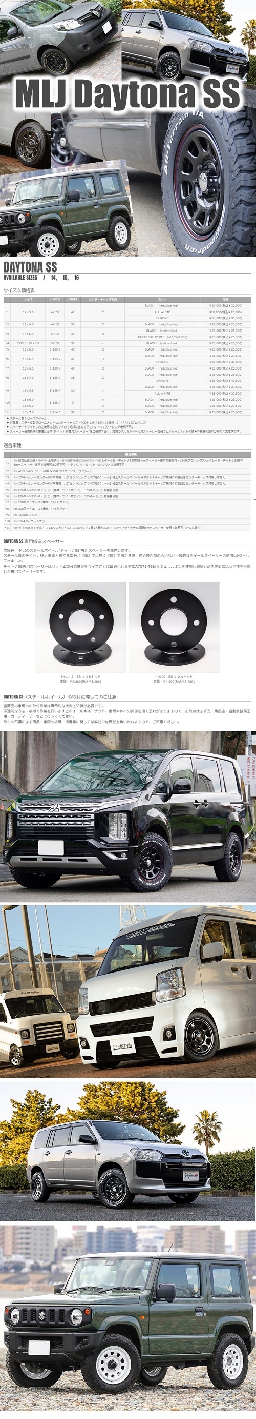 15×6.0J +30 5/108 MLJ Daytona SS 新品 15インチ ホイールのみ 4本セット ルノー KW系 カングー