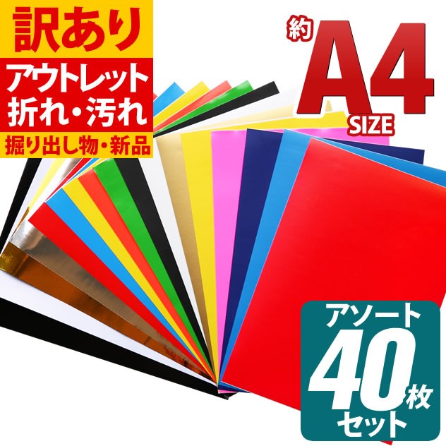 アウトレット品 折れシワあり 屋内使用向け 40枚セット 約A4サイズ カッティング用シート 粘着シート ステッカーシート