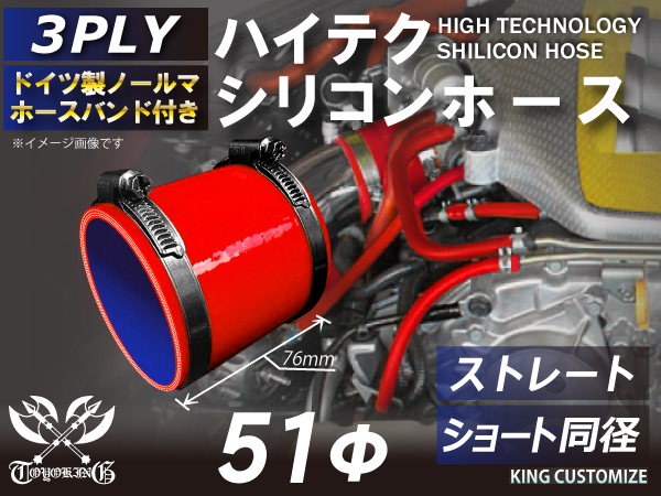 ホースバンド付 シリコン 継手 ホース ストレート ショート 同径 内径 Φ51mm 赤色 ロゴマーク無し カスタムパーツ 汎用品