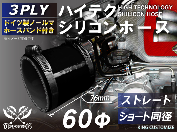 ホースバンド付 シリコン 継手 ホース ショート 同径 内径Φ60mm オールブラック ロゴマーク無し カスタムパーツ 汎用品