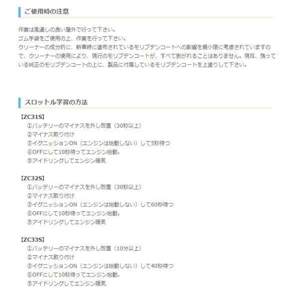 内容量 : クリーナー 100ml モリブデンコート 3ml