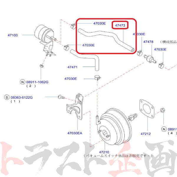 | 部品番号 | | 47473-RHR20 | | 商品名 | | ニスモ ヘリテージ バキューム ホース | | 必要数/台 | | 1 | | 旧純正品番 | | 47473-05U00 |