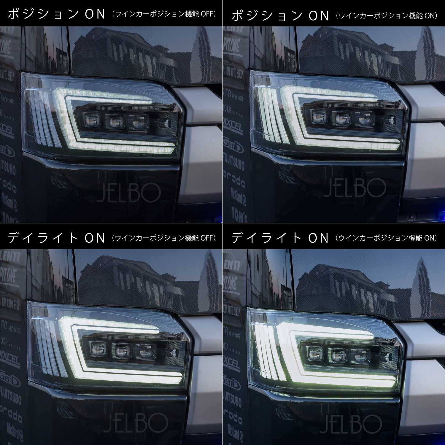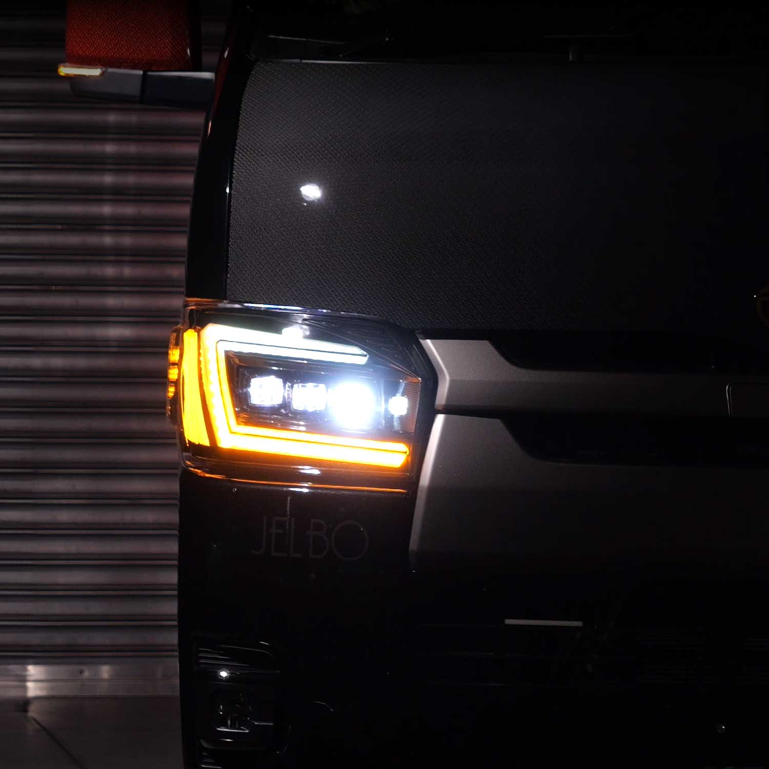 適合車種は200系ハイエースシリーズで、オリジナルデザインのヘッドランプにオープニング&エンディングアクションを採用しました。