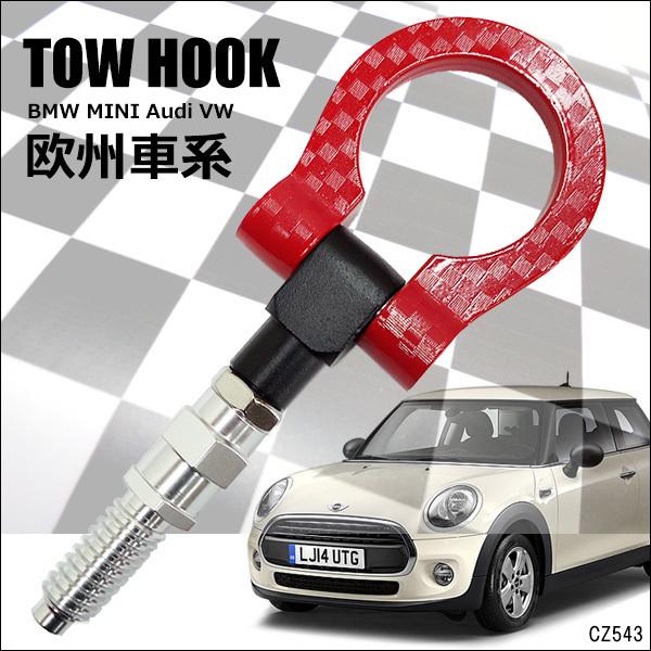 汎用 牽引フック 黒 赤 BMW MINI 欧州車 アルミ 可倒式 レーシングフック カーボン柄 ブラック レッド M16×P3.0