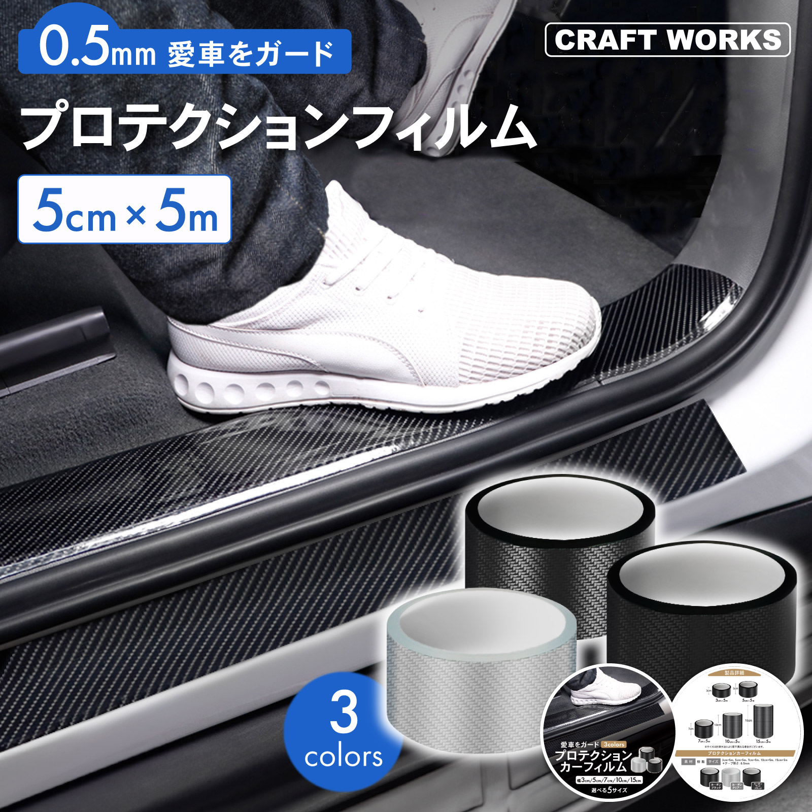 5cm 5m プロテクション カー フィルム スカッフプレート サイドステップ カーフィルム ドア モール 保護 ステップガード 車 0.5mm 汎用