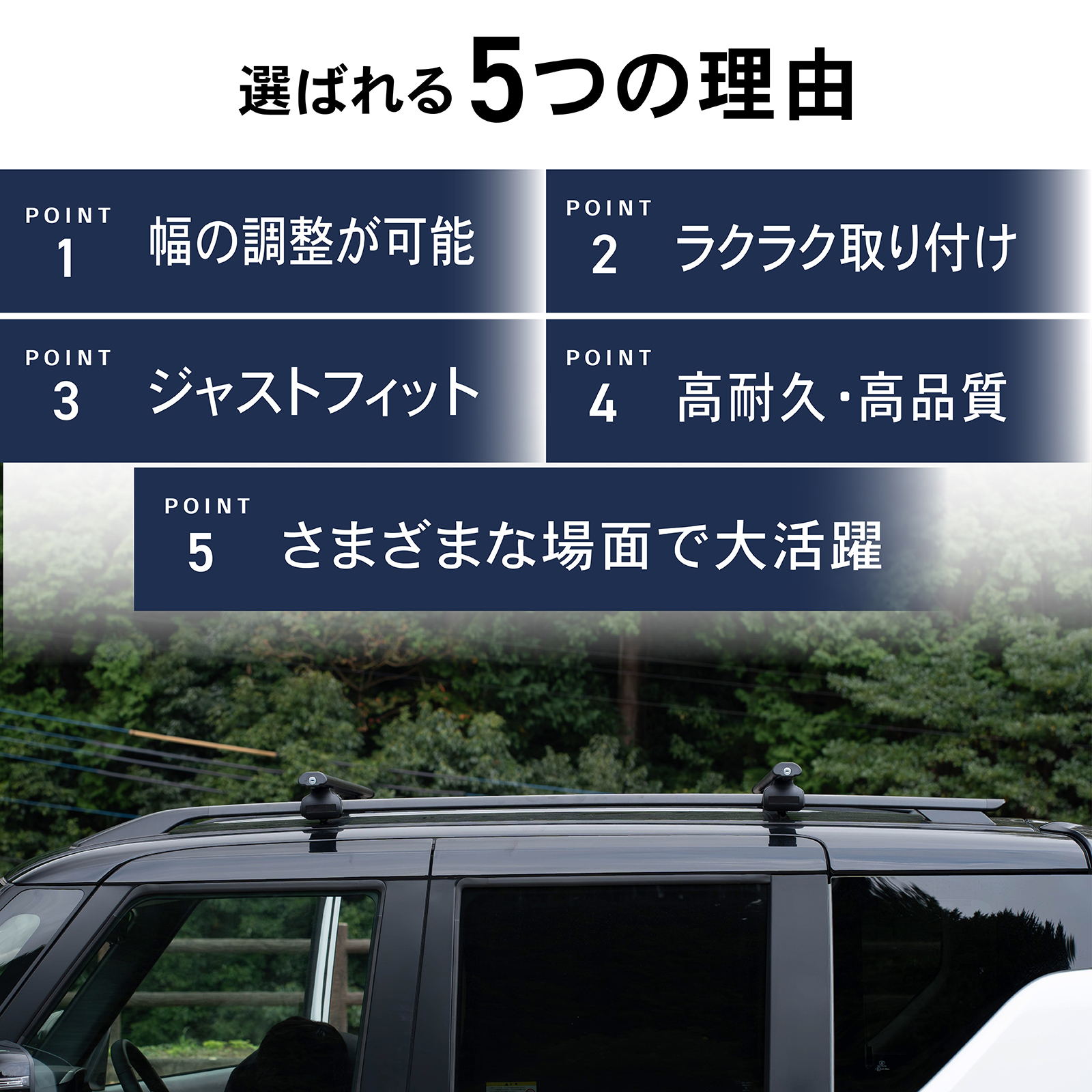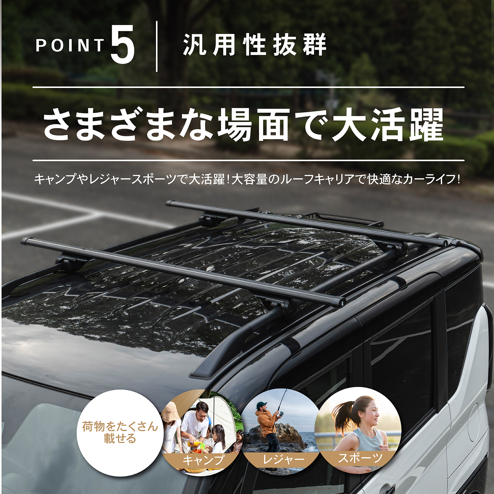 | 特徴 | 当店 大人気商品 圧倒的 のルーフラック ・POINT.1 「ラクラク取り付け」 ベースキャリアが装着されていれば乗せて固定を行うだけ ステー形状が楕円型なので様々なベースキャリアの形状に対応しております。 ・POINT.2 「風切音が最小限」 流線型の形状で風切音が少ない設計となっております。 専用プレート付属で風切音低減 ・POINT.3 「ジャストフィット」 現車でフィッティングを実施 細部までこだわった設計となっております。 ・POINT.4 「 ・ 」 素材には丈夫で炭素鋼を使用し、サンド調パウダーコーディングを行っているため傷に強く耐久度も高いです。 ・POINT.5 「さまざまな場面で大活躍」 荷物をたくさん載せるキャンプやレジャースポーツで大活躍 大容量のルーフキャリアでアウトドアをより快適に 「 デザイン 」「 機能性 」「 使いやすさ 」を実現した AutoONE こだわりのルーフラックで、快適なカーライフを |