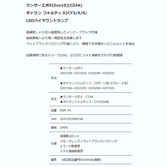 | □出品商品 | | メーカー | ・ | クリアワールド | | 商品名 | ・ | LEDハイマウントストップランプ | | カラー | ・ | スモークレンズ/マットブラックハウジング | | 品番 | ・ | RSM-44 | | 出品個数 | ・ | 1台分 |