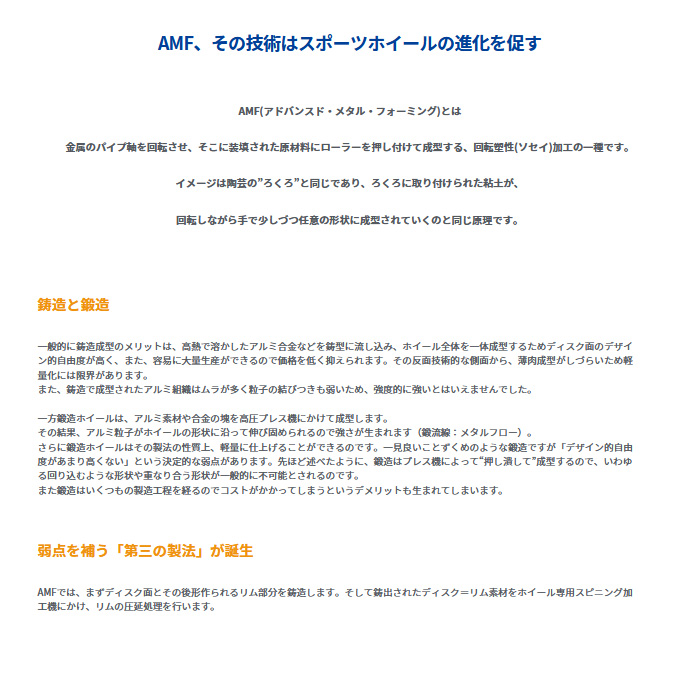 鋳造1ピースホイール AMF(フローフォーミング製法)