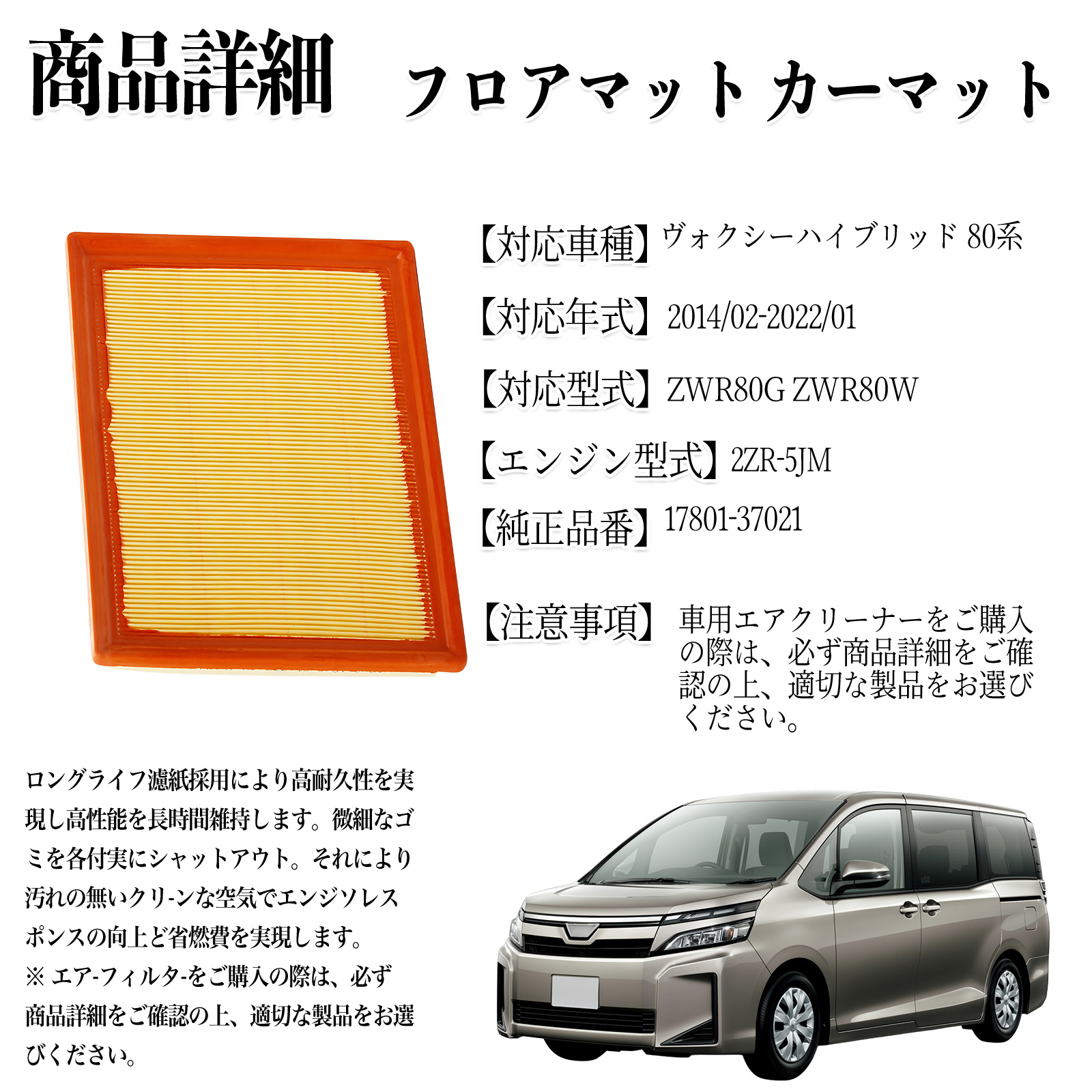 【エンジン型式】2ZR-5JM【フィルタータイプ】【対応車種】ZWR80G,ZWR80W