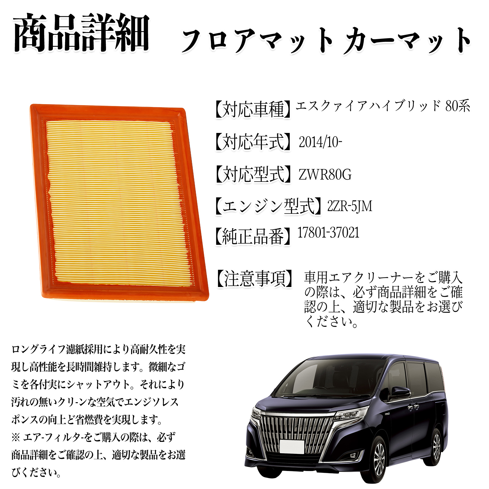 【エンジン型式】2ZR-5JM【フィルタータイプ】【対応車種】ZWR80G