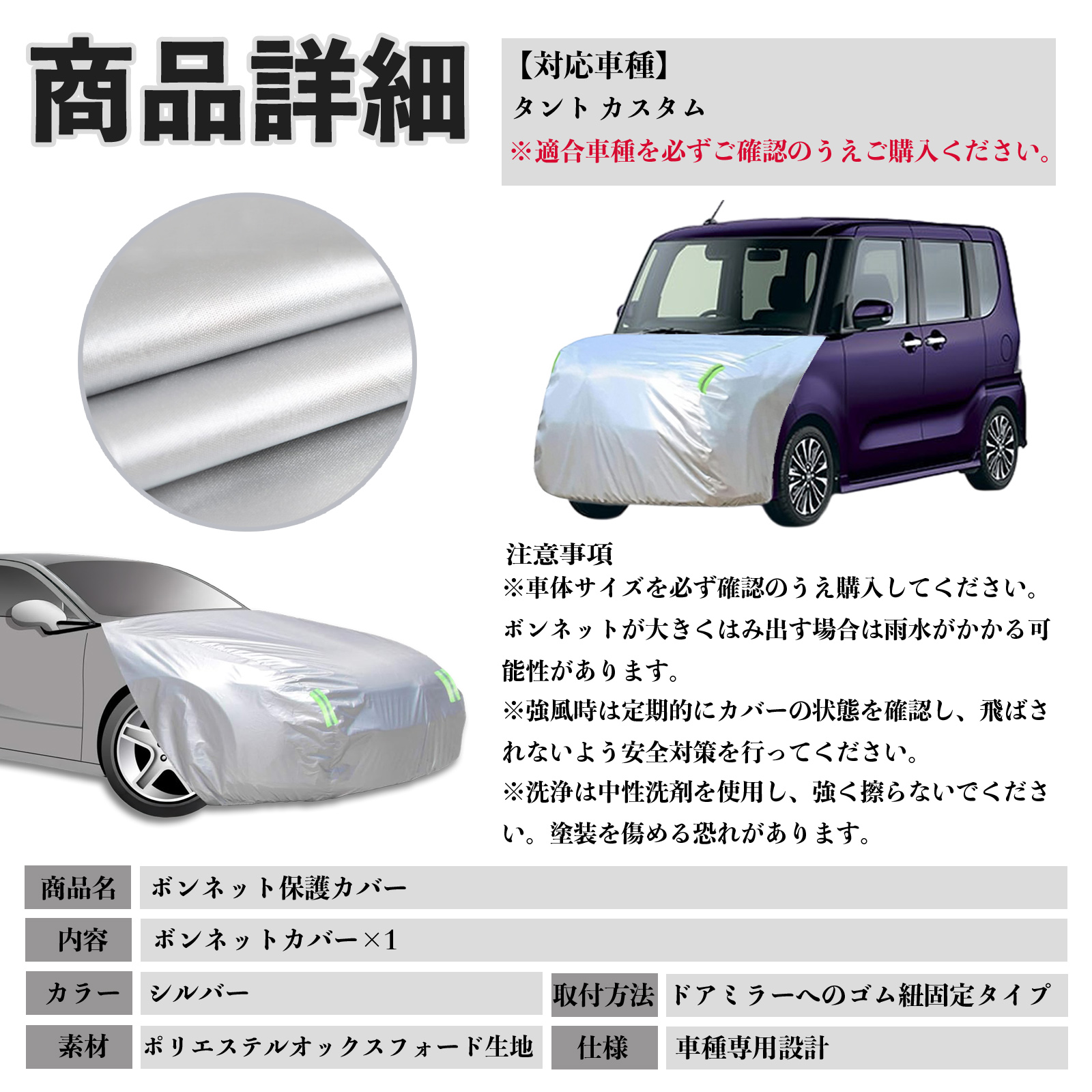 ダイハツ タント カスタム ボンネットカバー 防炎フロント保護カバー 車カバー 劣化 日焼け防止 アンチエイジング 防塵 蛍光反射 WeCar