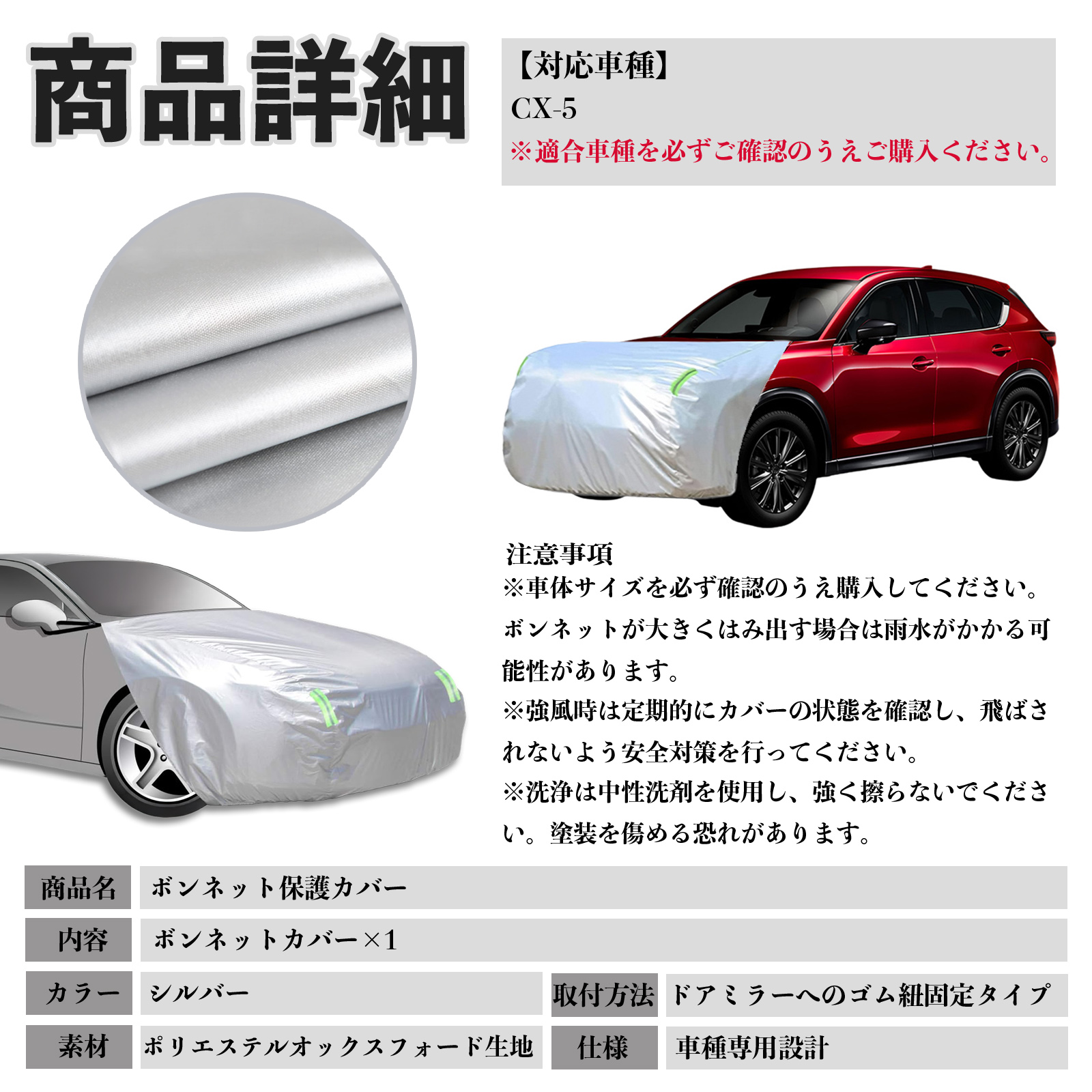 マツダ CX-5 ボンネットカバー 防炎フロント保護カバー 車カバー 劣化 日焼け防止 アンチエイジング 防塵 蛍光反射 WeCar