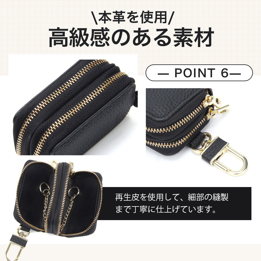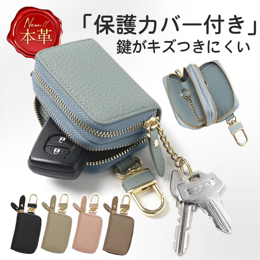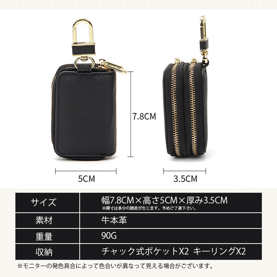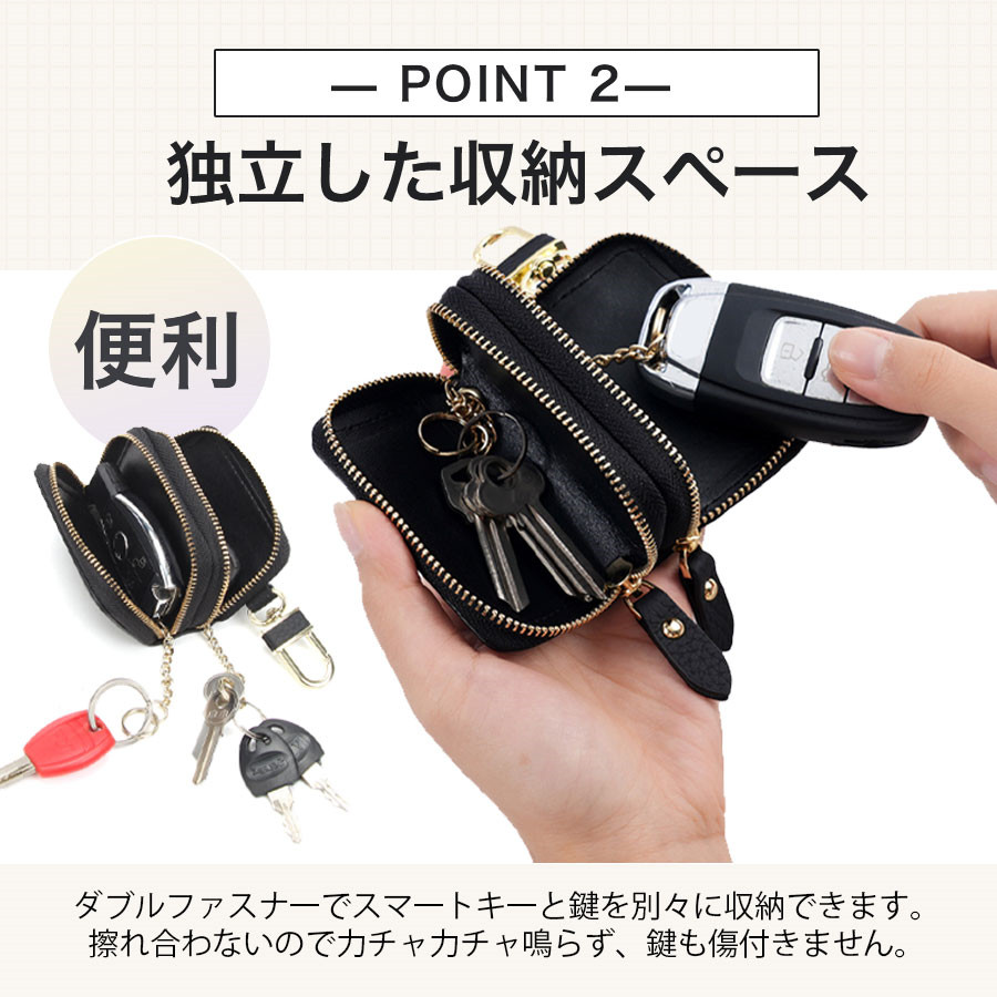キーケース レディース メンズ 2個収納 牛革 ダブルファスナー カード入れ 車 スマートキー対応 レザー 軽量 丈夫 送料無料 おしゃれ ケース