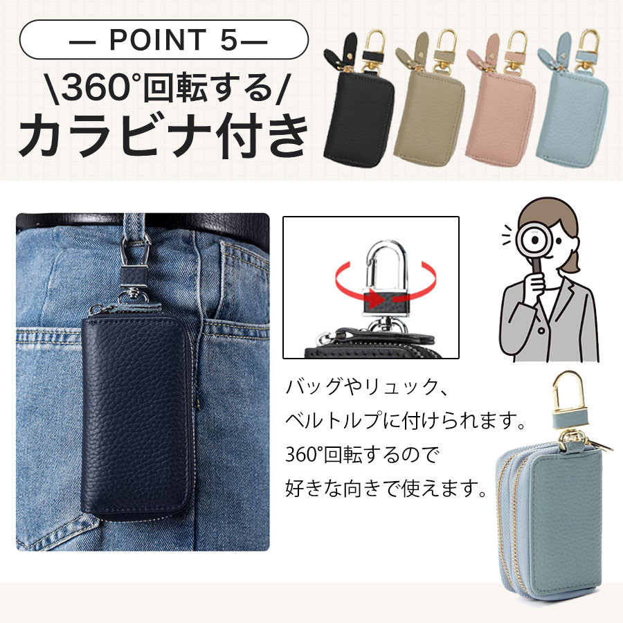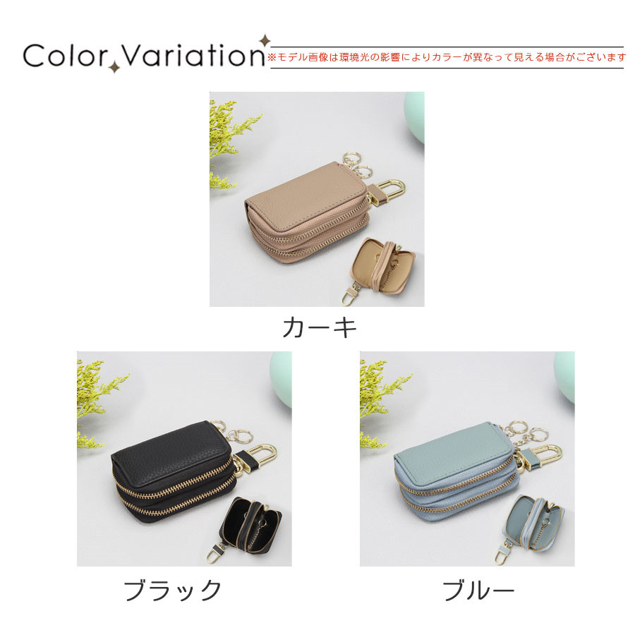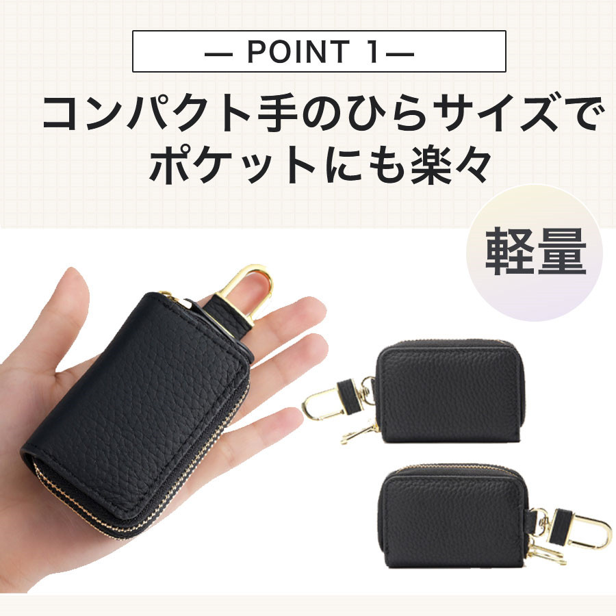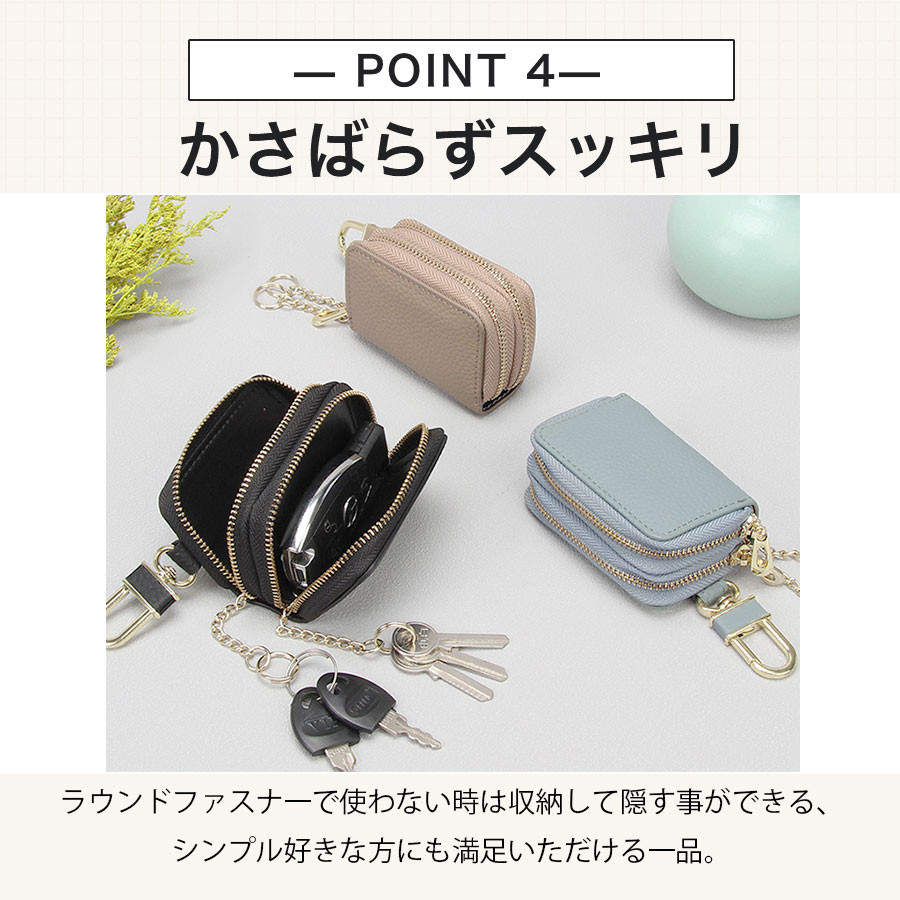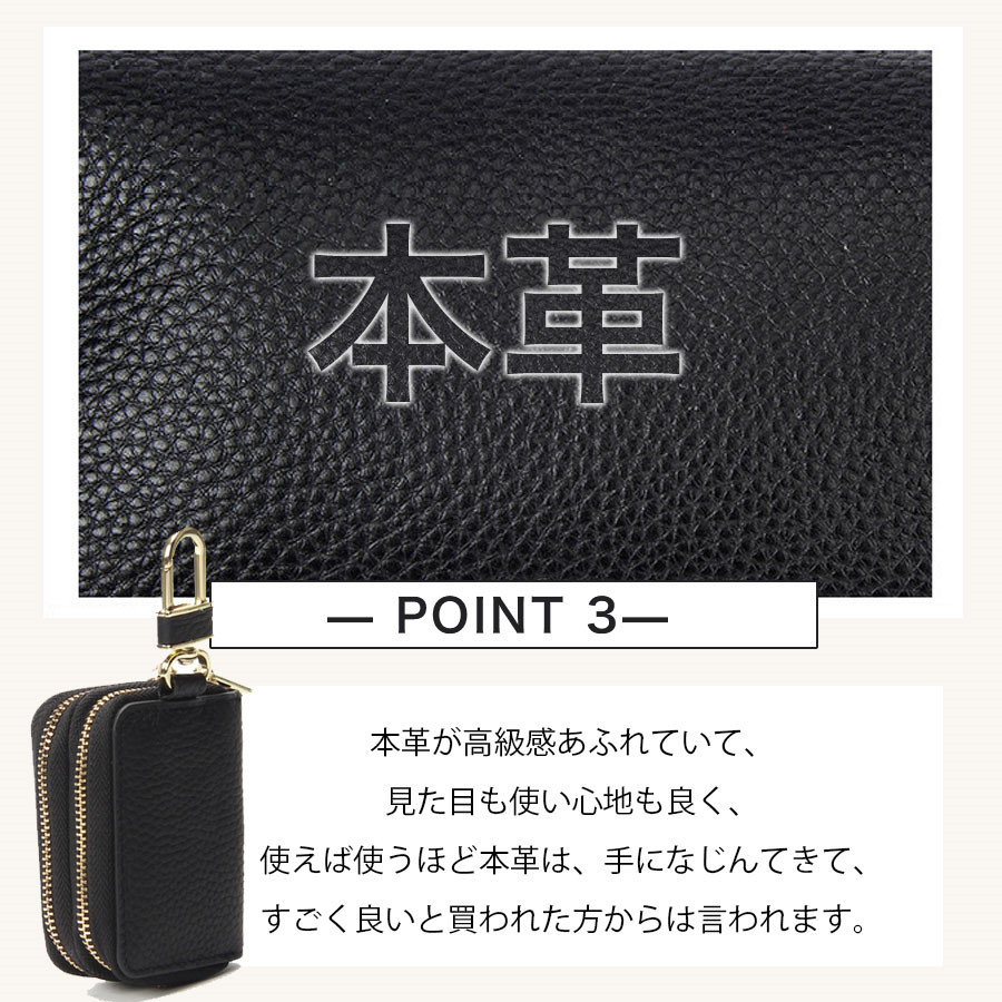 キーケース レディース メンズ 2個収納 牛革 ダブルファスナー カード入れ 車 スマートキー対応 レザー 軽量 丈夫 送料無料 おしゃれ ケース
