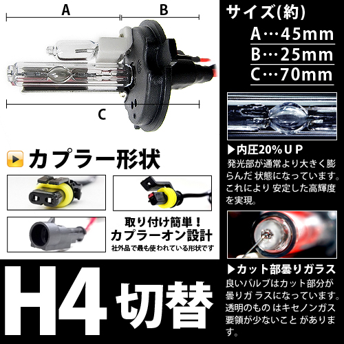 | ■セット内容■ ・バルブ規格:H4切替 ・ワット数:35w ・ケルビン数:4300k |