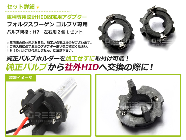 HID化 ■ HID バルブ アダプター 【H7】 2個セット フォルクスワーゲン/voLkswagEn/VW ゴルフ5/ゴルフV/ジェッタ等 コネクター 変換 台座