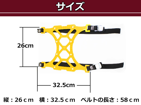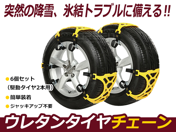 | ■適合タイヤサイズ:幅165mm〜265mm ■素材:TPU ■本体 ×6(タイヤ2本分) セット内容:本体×1 |