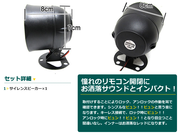 キーレスサイレンスピーカー アンサーバックホーン キーレス ホーン 12V バックスピーカー アンロック ドアロック 音