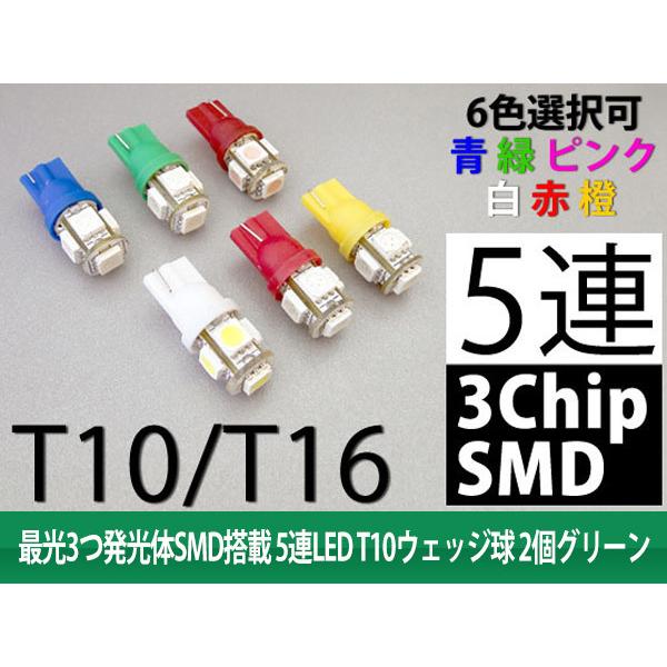 【特】T10 LEDウェッジ球 SMD搭載 5連 最光3つ発光体 グリーン 2個