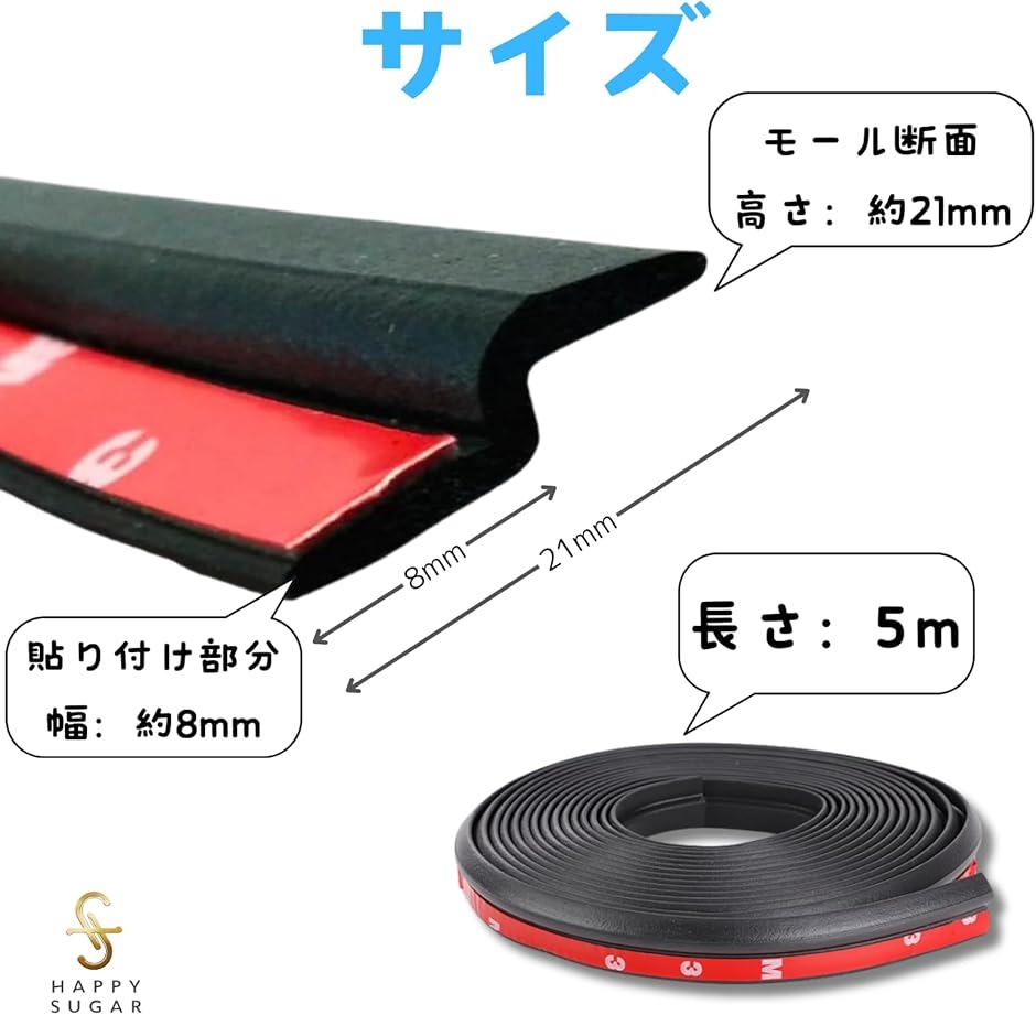 「商品詳細」長さ:5m モール断面:高さ約21mm 貼付け部:幅約8mm